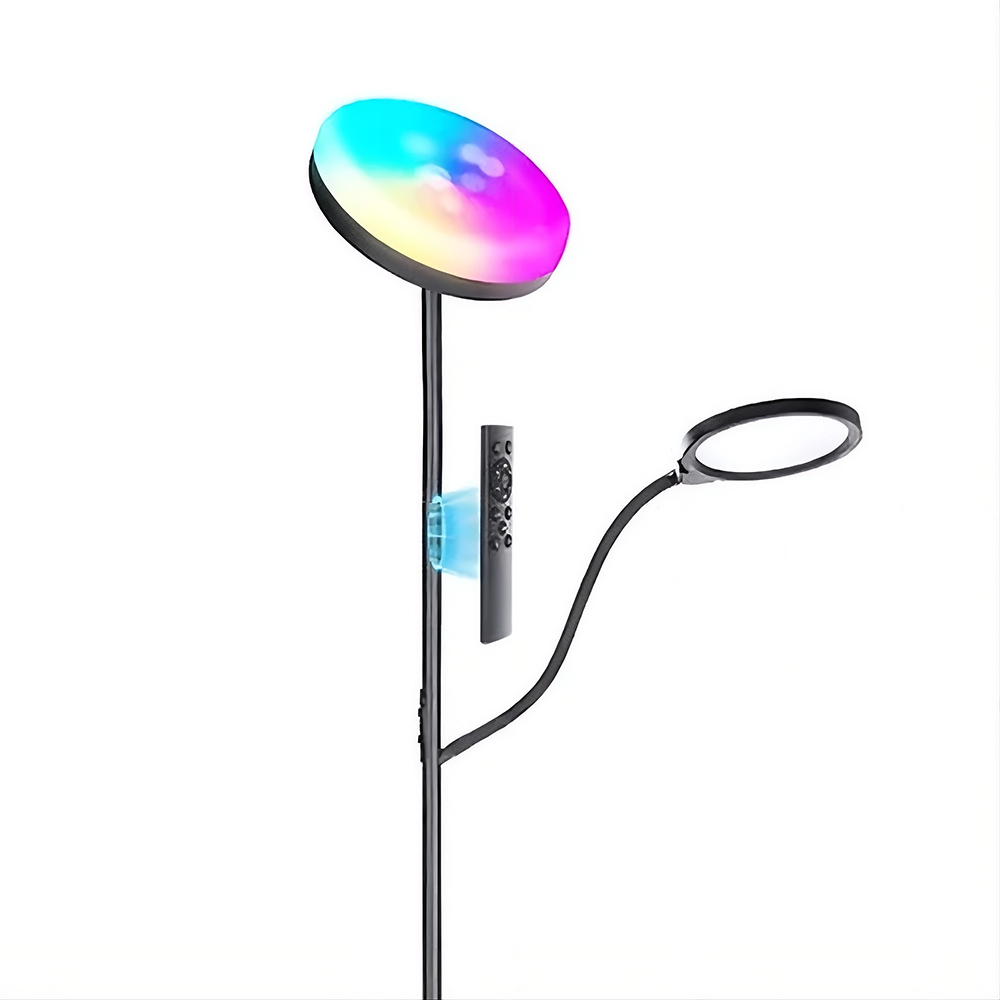 A lámpa azoknak készült, akik egyetlen állólámpától várják el, hogy este filmezéshez meleg RGB-fényt, olvasáshoz fókuszált fehér fényt, napközben pedig napfényhez közeli, 6500K-es hideg fehér megvilágítást nyújtson. A felső fej 42 db RGB 5050 LED-del gondoskodik a dinamikus hangulatfényről, míg az alsó főfej és az olvasókar összesen 154 db CCT 2835 LED-del biztosít szabályozható fehér fényt 2700K-tól 6500K-ig. A fényerő 5%-tól 100%-ig fokozatmentesen állítható, a vezérlés pedig három csatornán is elérhető: mobilapplikáción, a mellékelt távirányítón és a lámpaoszlopon lévő fizikai gombokon keresztül. A vas-műanyag váz stabilitást és tartósságot ad, miközben a lámpa memóriafunkcióval menti az utoljára használt beállítást.