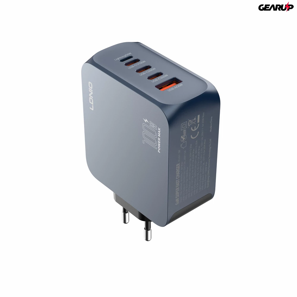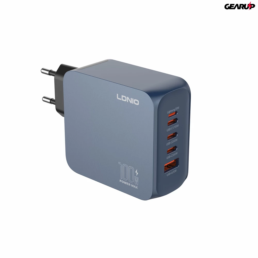 Az LDNIO Q8 egy GaN technológiás, 100 W maximális teljesítményű, többportos hálózati töltő EU csatlakozóval. Öt kimenetével (3× USB-C, 1× Lightning, 1× USB-A) praktikus választás, ha egyetlen adapterrel szeretnéd megoldani több eszköz töltését otthon, irodában vagy utazáskor.