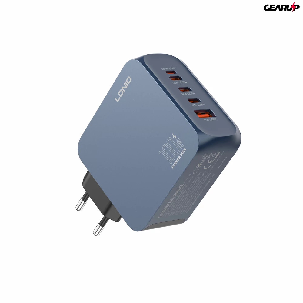 A töltőn 3× USB-C, 1× Lightning és 1× USB-A csatlakozó található, a maximális összteljesítmény pedig 100 W.