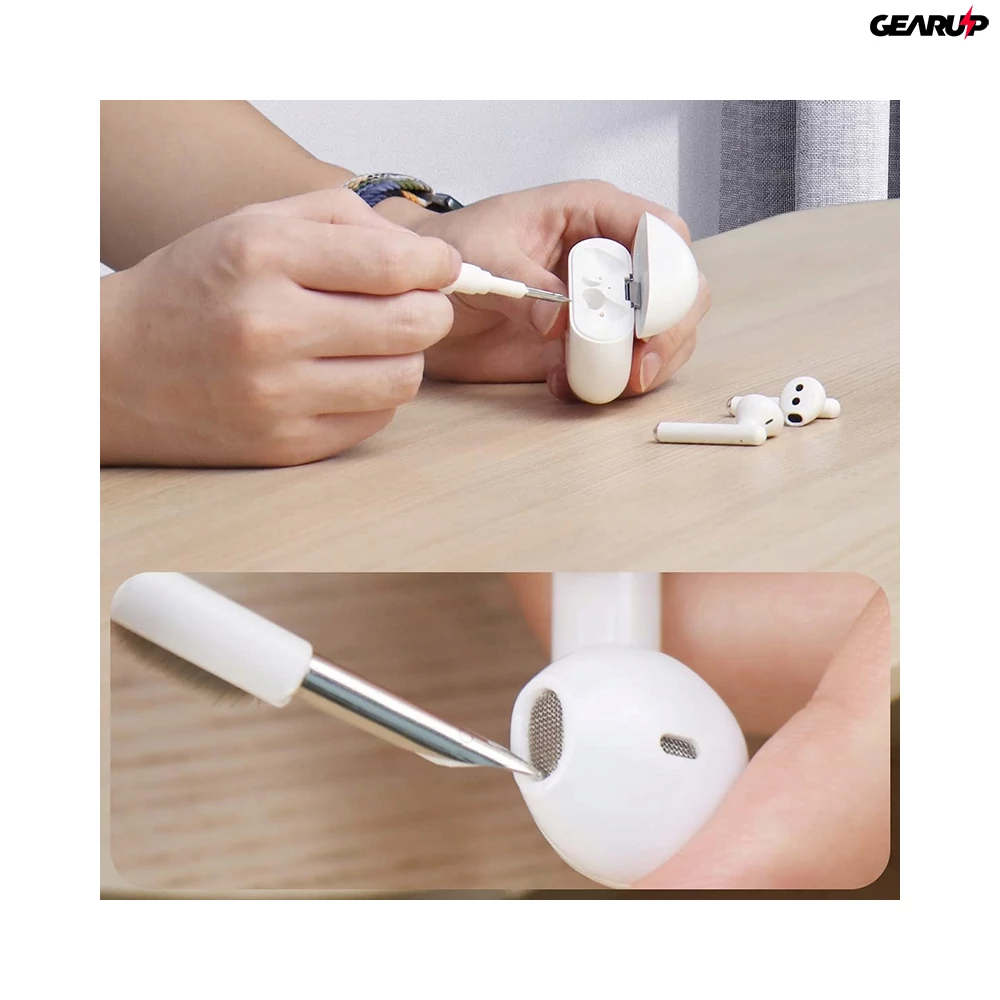 A puha seprűvel könnyen elérhetők a fülhallgatók nehezebben hozzáférhető részei is, és az apróbb por- és szennyeződés részecskéket is eltávolítja. Ezen felül, a seprű speciálisan tervezett, vékony végével könnyen kikaparhatók a makacs szennyeződések, amelyek a fülhallgató hangminőségét befolyásolhatják.