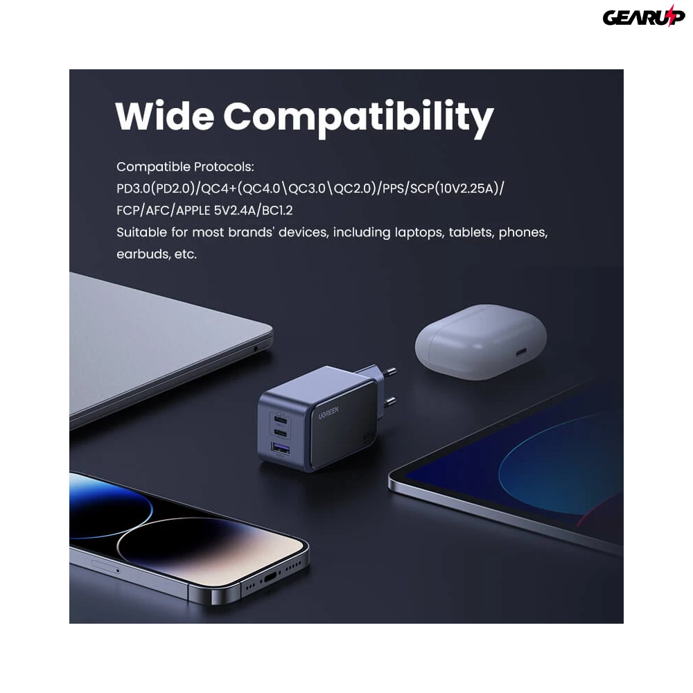 Az UGREEN Nexode GaN töltőadapterrel élvezheted a gyors, akár 65W teljesítményű töltést egyetlen USB-C porton keresztül. Tökéletes választás laptopok, tabletek vagy okostelefonok villámgyors feltöltésére, például egy MacBook Air M2 akár 51%-ra tölthető 30 perc alatt.